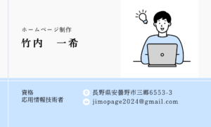 長野県松本市出身。松本蟻ケ崎高等学校、信州大学工学部情報工学科を卒業後、県内の大手企業に入社し、アプリ開発に従事。これまで地元で過ごしてきたことから、「地元に貢献がしたい」という思いがあった中、高校時代からの友人であるARIAKE base BK代表と、個人カメラマンとして活動する妹のホームページを制作したことをきっかけに、自身の情報系の経験を活かして地元に貢献ができるホームページ作成の事業を開始。ARIAKE base BK代表およびカメラマンである妹と協力して、ホームページ制作を通じて地元の魅力をより多くの方に伝え、地域の活性化につなげることを目指して活動しています。現在はアプリ開発のプロジェクトリーダーとして勤務しながら、副業として個人事業を行っています。事業名は、地元 × ホームページを掛け合わせた「ジモページ」です。