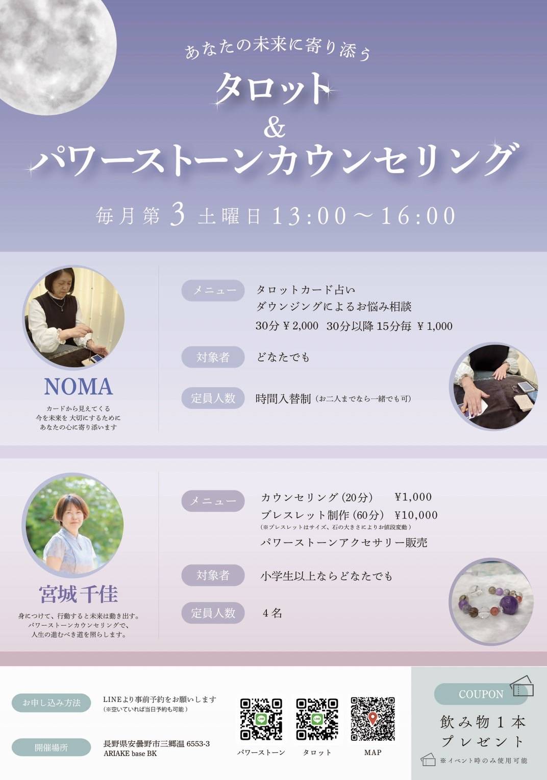 心にそっと寄り添うをモットーに、やさしく、あたたかく、安心して話せる時間を大切にし、あなたの気持ちを尊重しながら、必要なメッセージを丁寧にお伝えします。